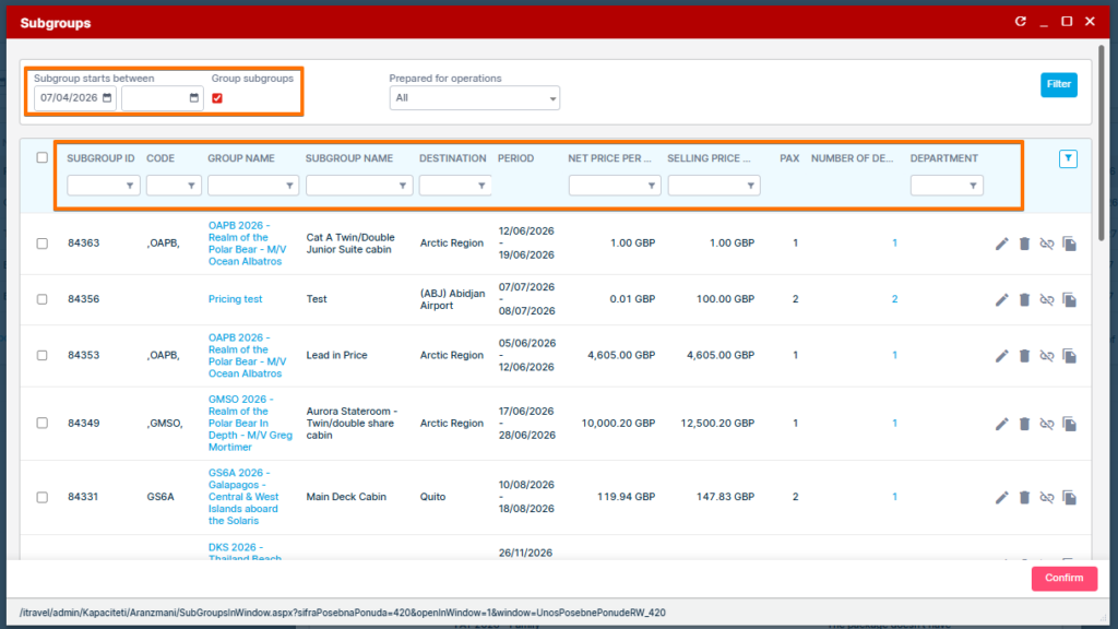 Users can now precisely control where SPOs apply by selecting exact subgroups (tour departures), significantly reducing mismatches between SPO visibility and applicability. Partner-based filtering improves operational efficiency and allows users to quickly find and manage relevant SPOs.