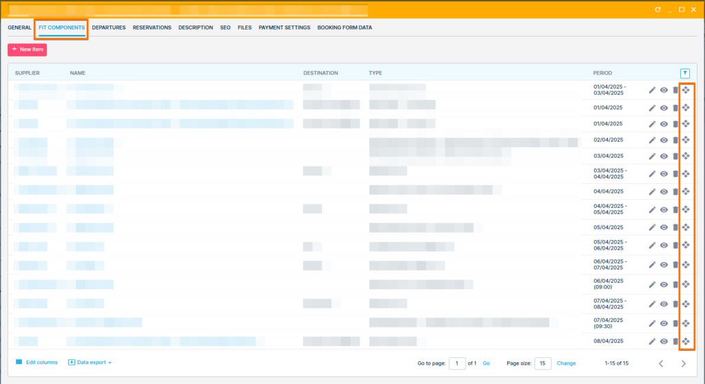 Users can now manually reorder components within an FIT Tour Product using drag & drop. This enables full control over the sequence of package elements directly in the Components tab.