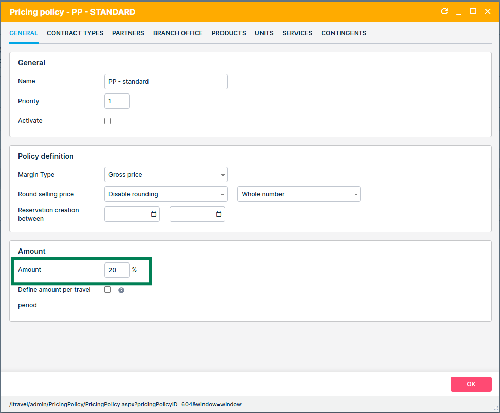 - When creating a new pricing policy, the option Define amount per travel period is unchecked by default.