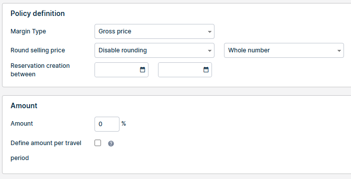 - The Amount field to define the margin percentage is moved from the Policy definition section to the new Amount section