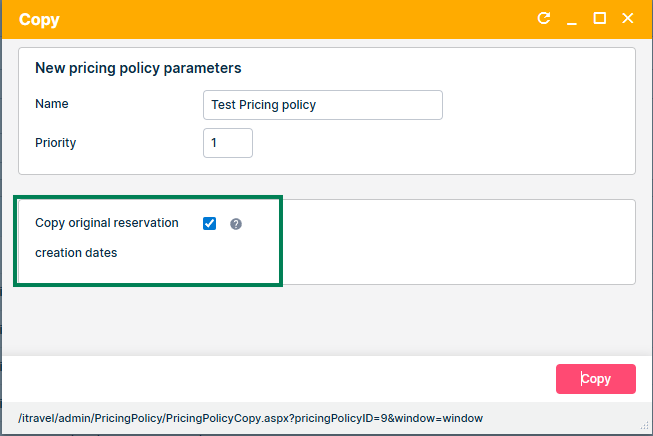 • Reservation creation dates for the original (copy-from) pricing policy are displayed and can be adjusted