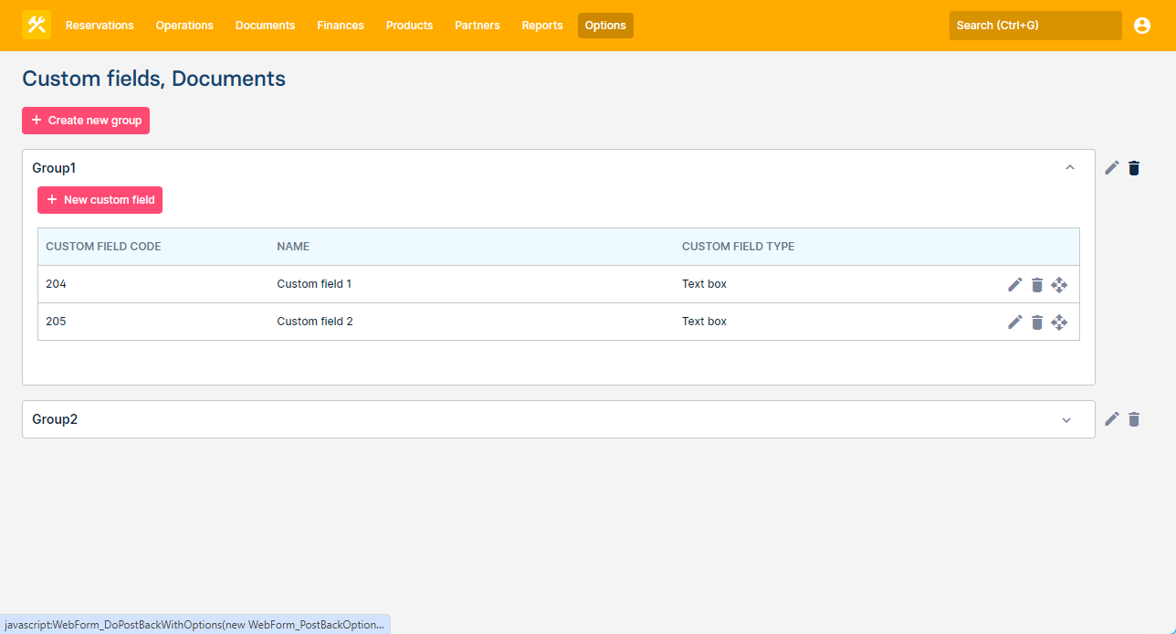 Custom fields can now be grouped into tabs and reordered across Reservation, Partner, Passenger, Reservation Item and Document custom fields.
